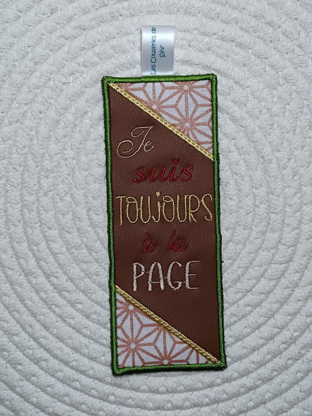 Marque-page brodé en simili cuir & suédine – Création artisanale – Cadeau lecteur
